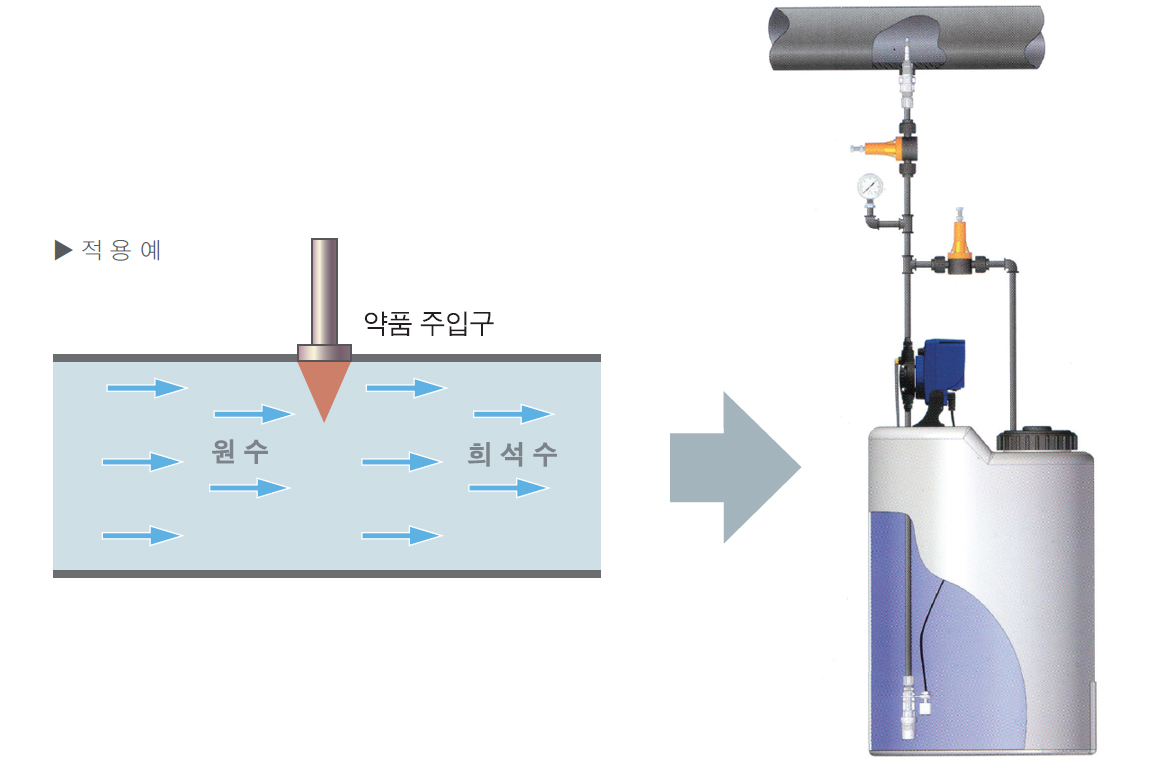 ¼ö¹è°ü,¹°ÅÊÅ©¿¡ Á÷Á¢ ÅõÀÔÇÏ´Â ¹æ½ÄÀ¸·Î Åë°ú À¯·®¿¡ ºñ·ÊÇÏ¿© Á¤·®ÀÇ ¾àǰÀ» ÀÏÁ¤ÇÏ°Ô °ø±ÞÇÏ´Â ÀåÄ¡ÀÌ´Ù.