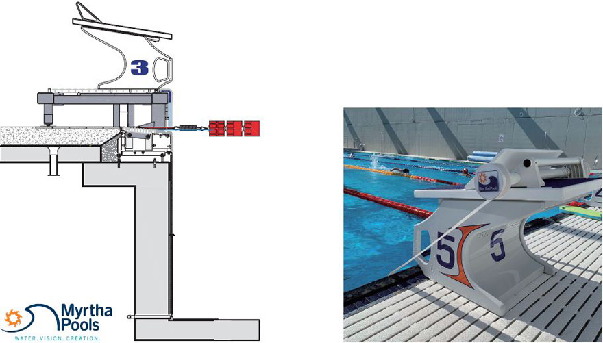 Myrtha Track Start Like the previous starting block, the new edition is also FINA compliant. The latest version of the block